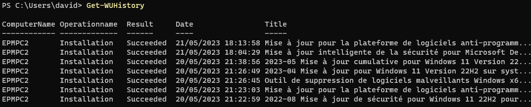 Lorsque j’execute la commande: Get-WUSettings -ComputerName Poste0