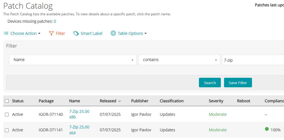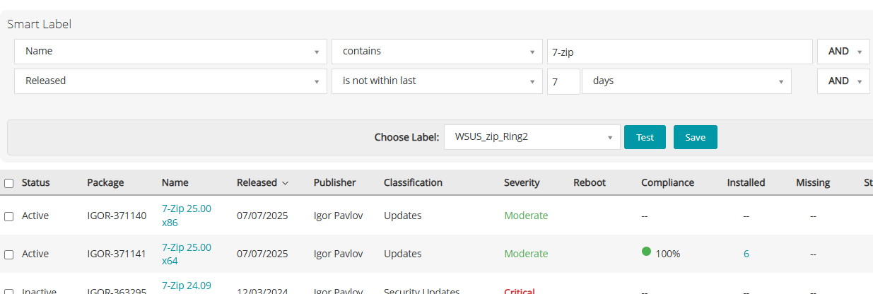 While this example focuses on 7-Zip, the same methodology can be applied to Microsoft patches or any other software updates. You can also extend the logic by introducing additional filters, such as severity level or classification (e.g., critical, security updates, feature updates), to fine-tune the rollout process according to your organization’s risk tolerance and validation needs.