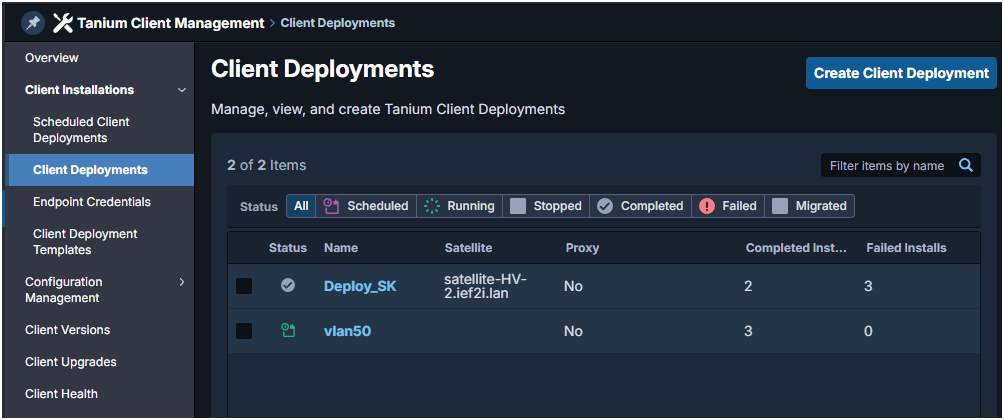- Go to Client Deployment.